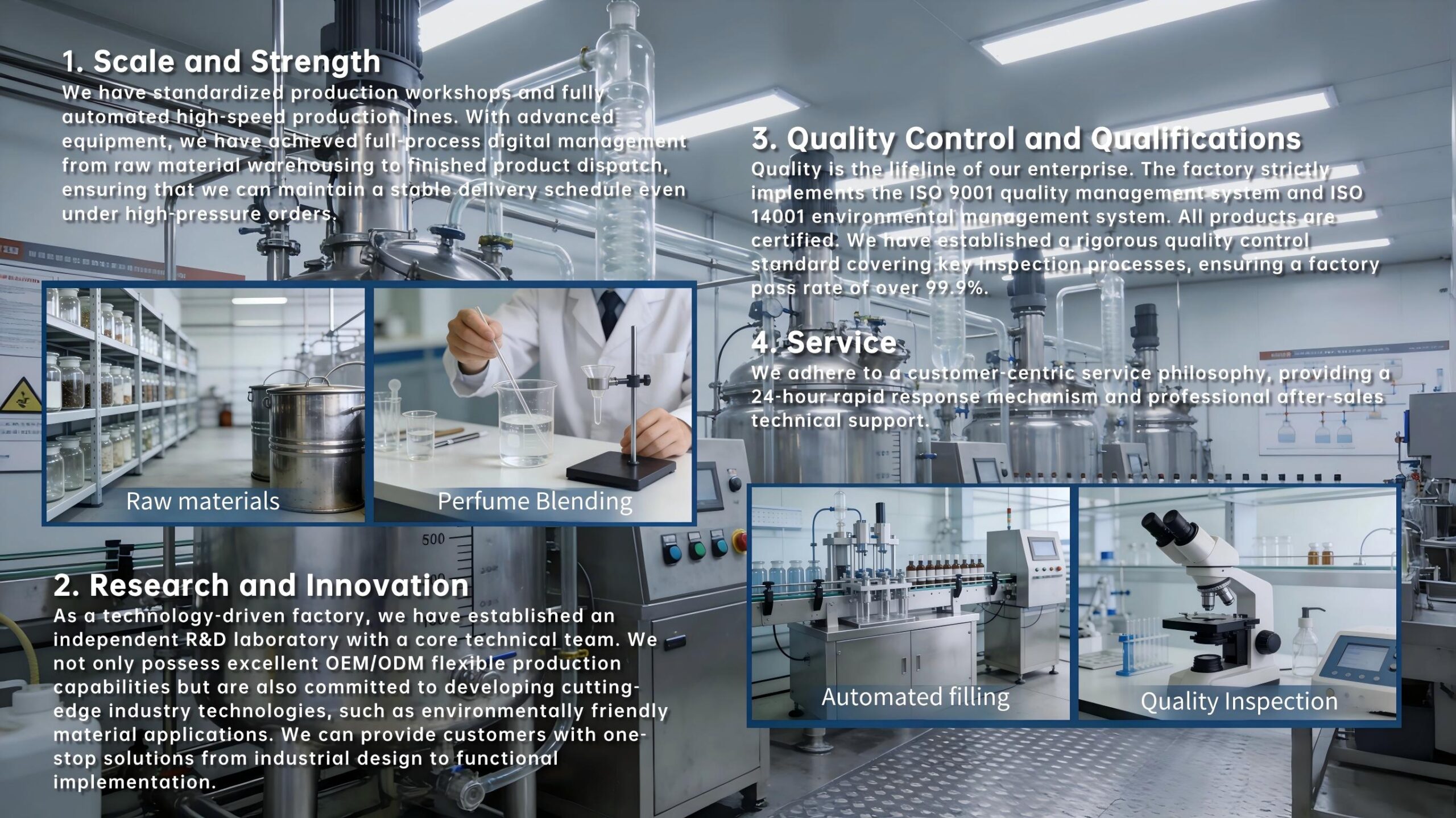 Led by master perfumers and senior engineers, we craft each sensory experience with meticulous artistry, giving every brand a distinctive aura of prestige and high luxury.
